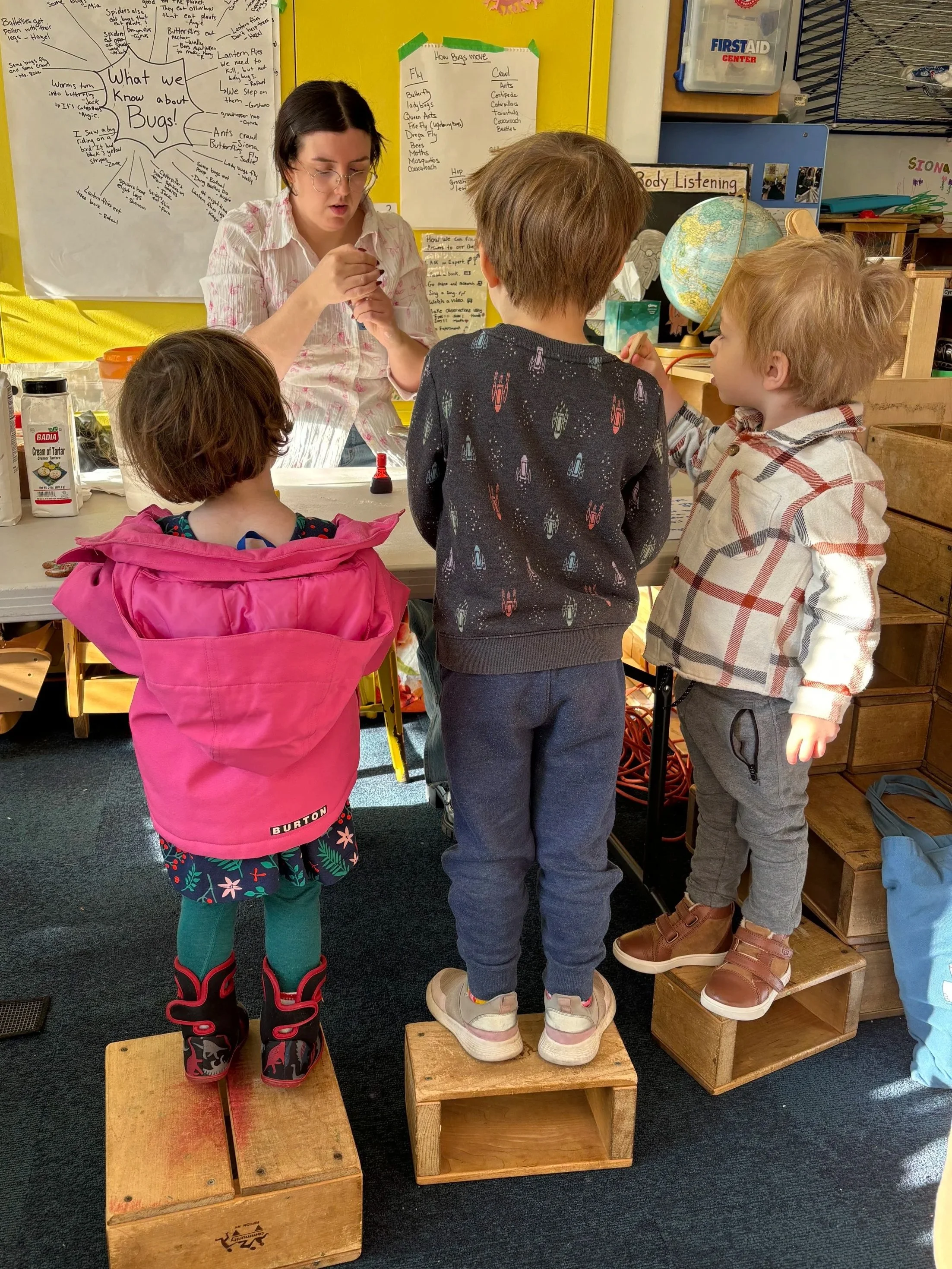 She joined Maple Street at age 15 as an afterschool intern, learning alongside the teachers now known as the school’s matriarchs—Ann-Marie, Barbara, Jackie, and Nelcia. From the beginning, she was drawn to Maple Street’s belief in expansive play—children encouraged to explore every surface and nook, with deep learning woven into that freedom through teachers who invite children to share their work and thinking.